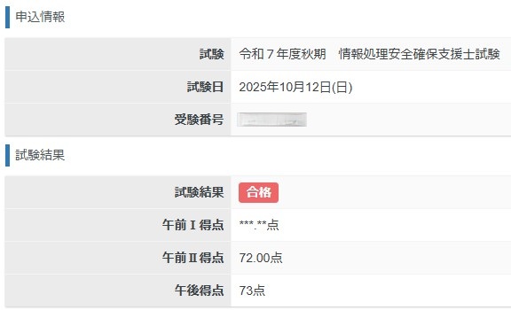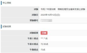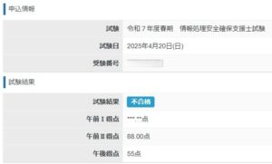 情報処理安全確保支援士過去問道場を用いて完成度を高めた結果、単なる消化試合という感じでした。